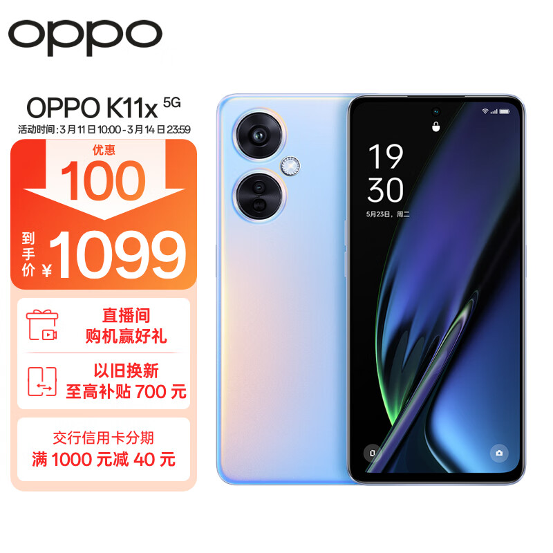 OPPO K11x 1亿超清影像 超大内存 67W闪充 长续航 120Hz 8GB+128GB 珠光 智能 拍照 防水 5G 学生手机价格:1199.00元!