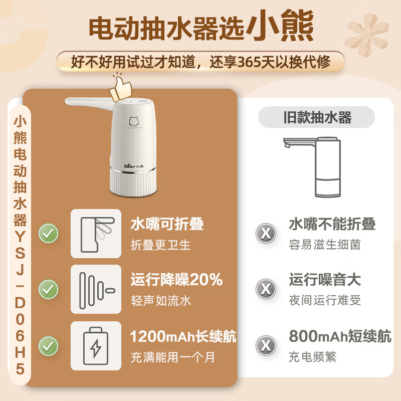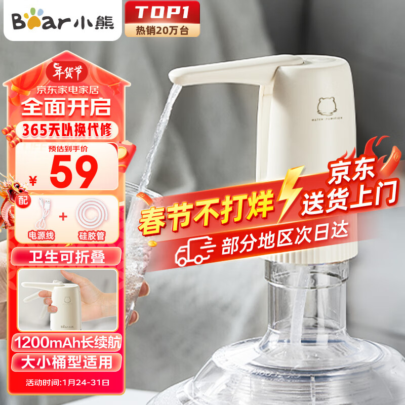 小熊(bear)桶装水抽水器 电动压水器 自动吸水器 矿泉水上水器 饮水机抽水泵 YSJ-D06H5价格:59.00元!