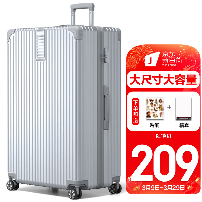 SOO行李箱男学生旅行箱拉杆箱女万向轮 A210密码皮箱子28英寸奢华银价格:209.00元!