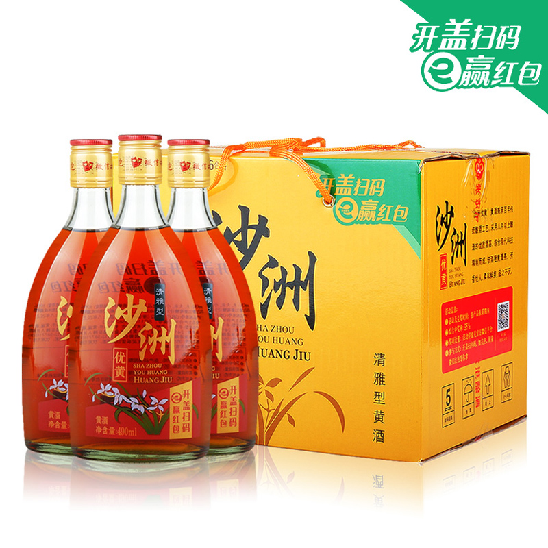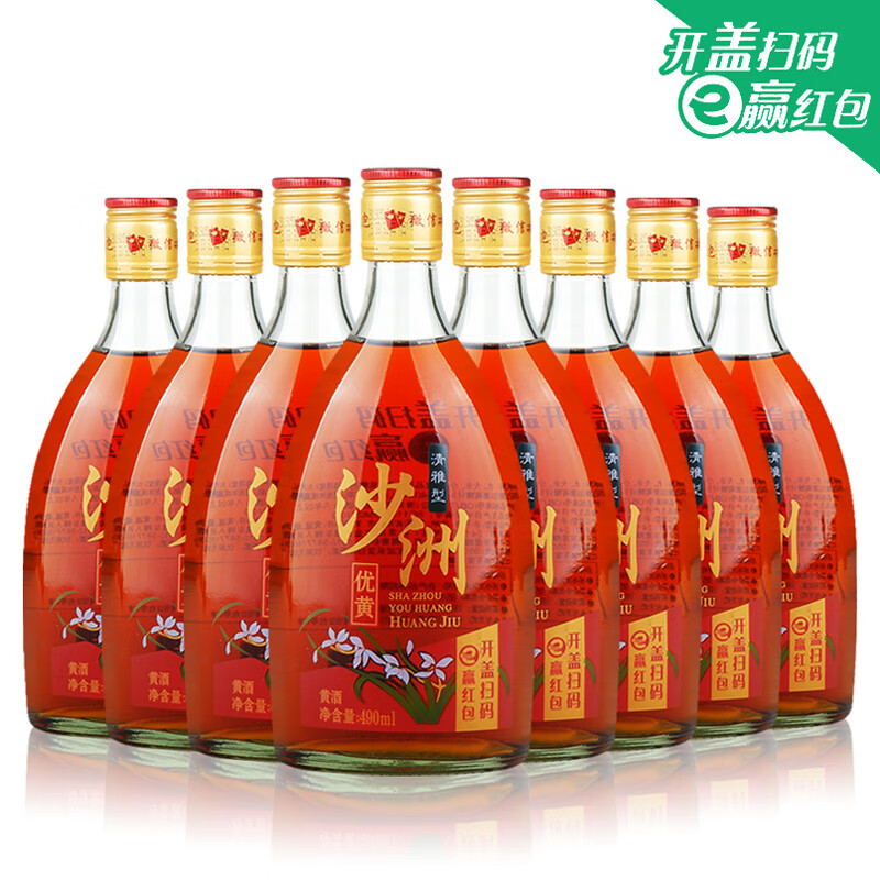 沙洲优黄清雅型八年陈酿半干型黄酒 10度大米纯粮酿造 苏州特产花雕酒整箱装490mL*8瓶价格:228.00元!