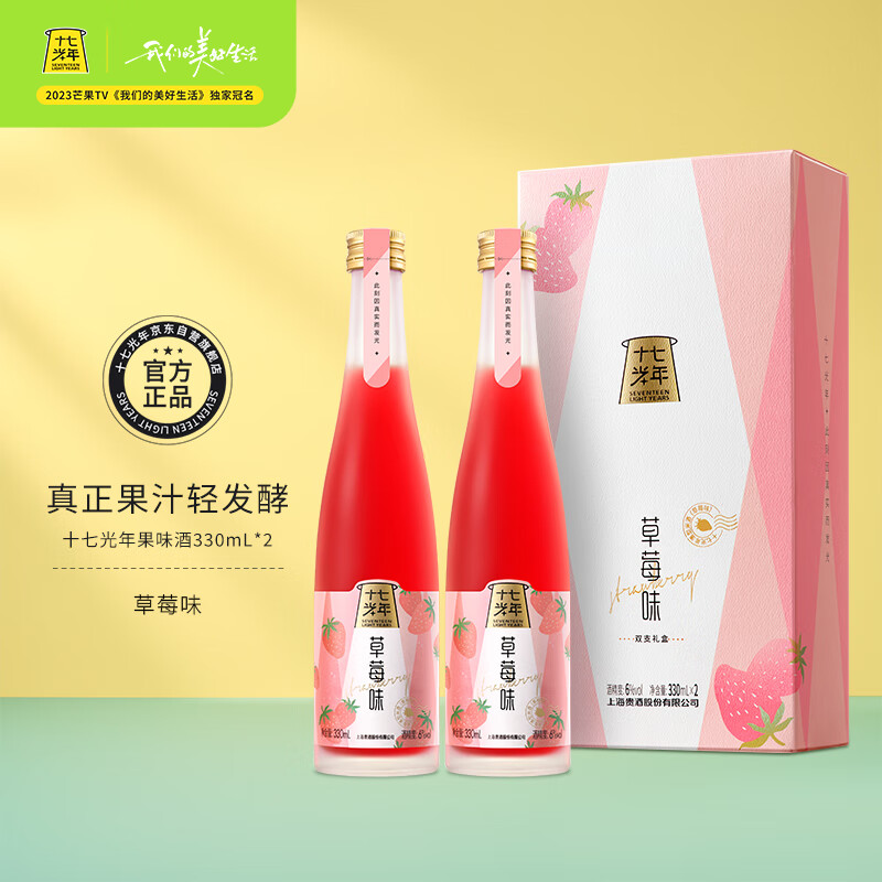 十七光年 果味酒 草莓口味 6度 330ml*2瓶礼盒装 低度微醺 送礼礼物价格:99.00元!