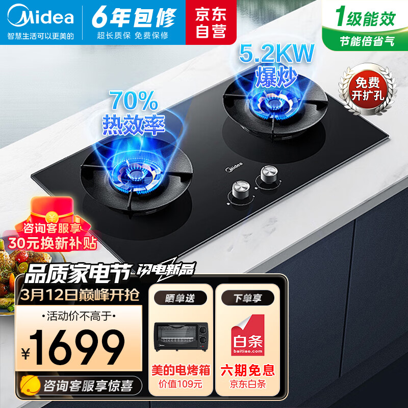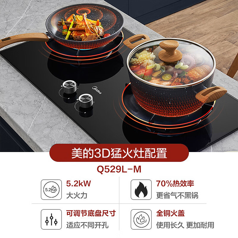美的(Midea)燃气灶天然气 双灶具 家用5.2kW猛火聚能灶台嵌两用 搪瓷易打理 高能效灶 节能灶 Q529L-M价格:1699.00元!