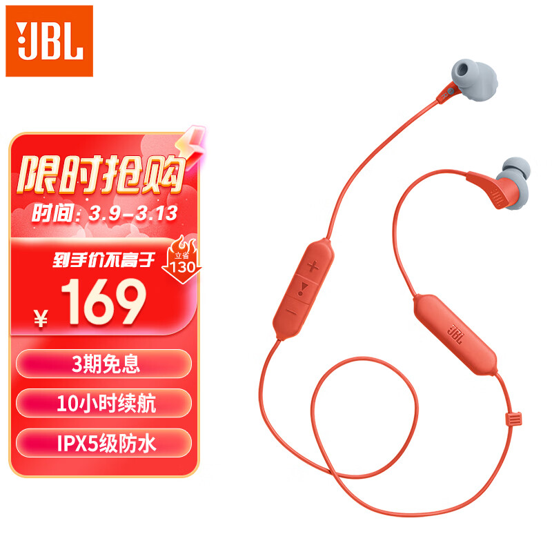JBL Run BT2 颈挂式运动无线蓝牙耳机入耳式跑步登山骑行磁吸防丢游戏音乐耳机苹果华为小米通用 红色价格:299.00元!