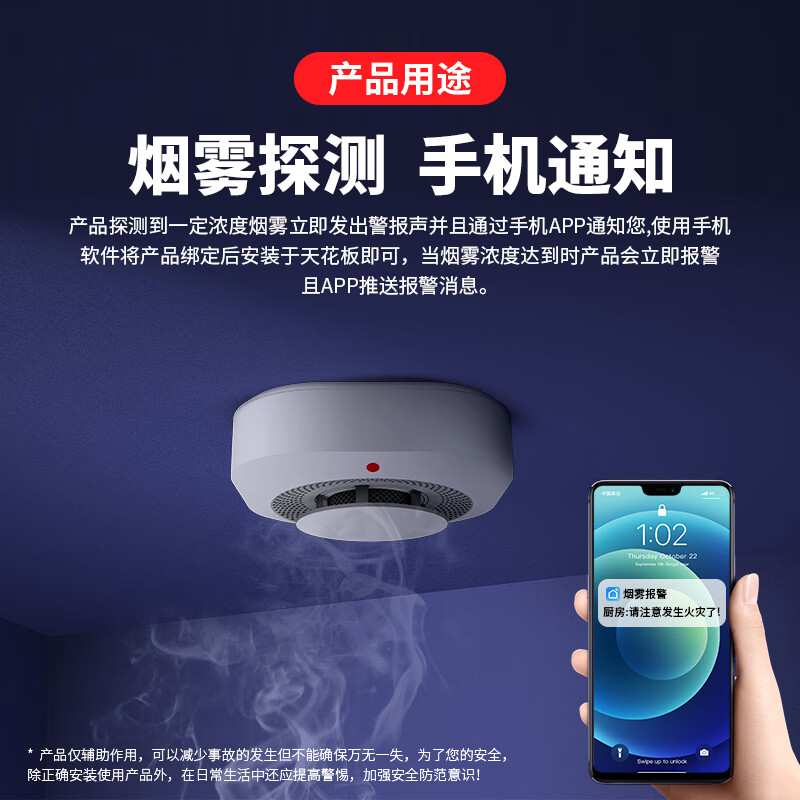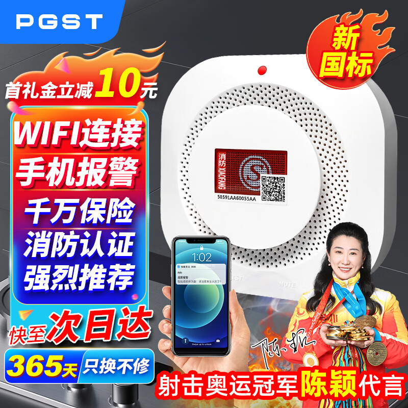PGST 烟雾报警器 wifi烟雾报警器 国标3C认证家庭企业消防烟感火灾烟雾探测手机远程报警器PA-441价格:129.00元!