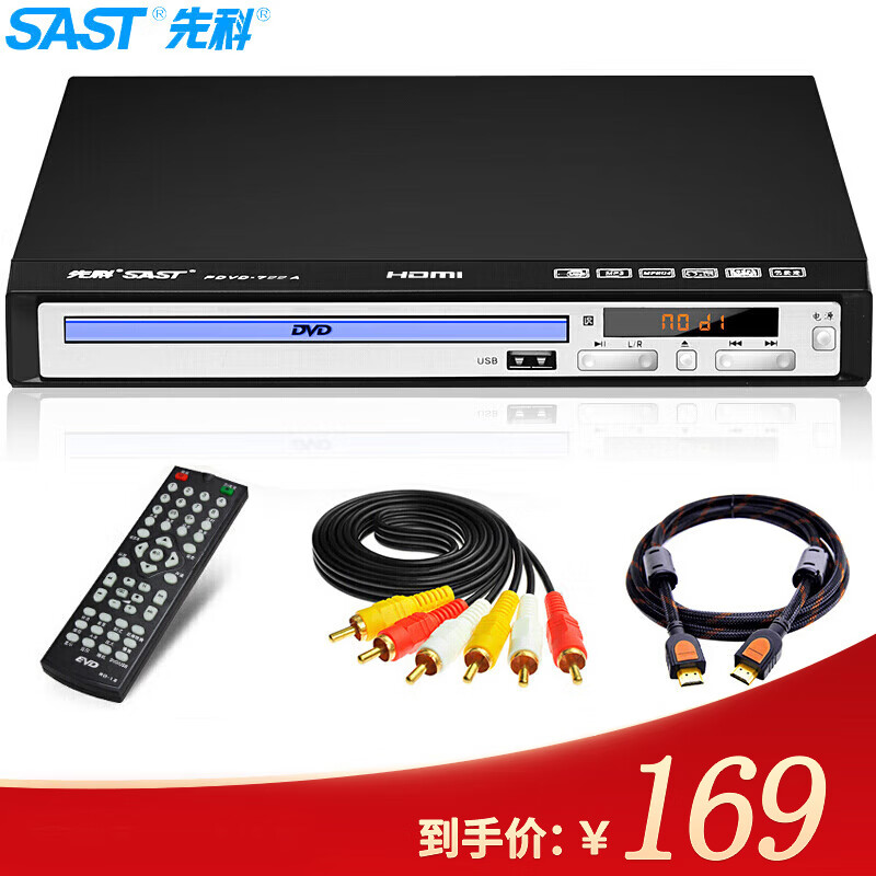 先科(SAST)DVD播放机 HDMI巧虎播放机CD机VCD DVD光盘光驱播放器 影碟机 USB音乐播放机 黑色价格:179.00元!