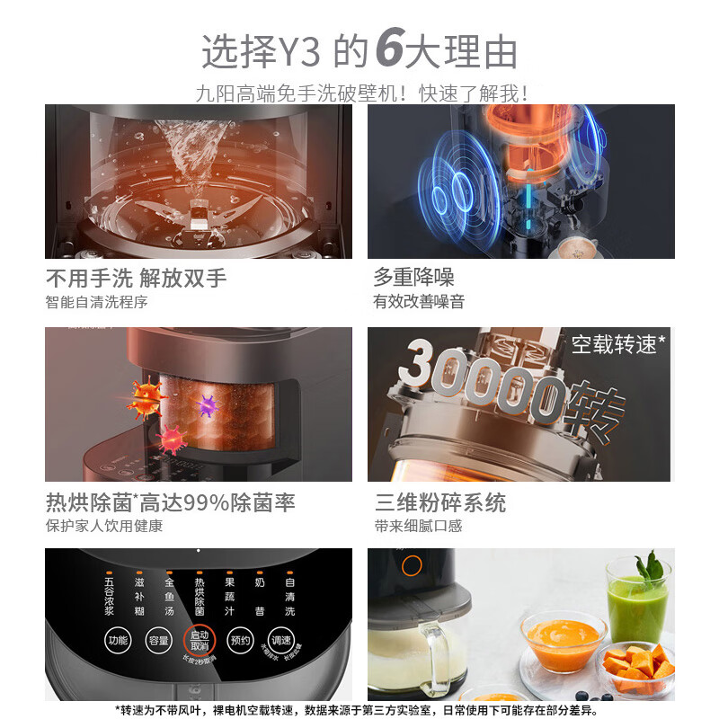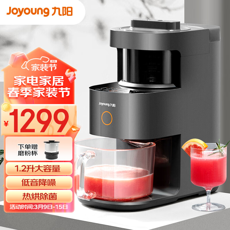 九阳(Joyoung)免手洗破壁机 破壁机家用 低噪音高端多功能热烘除菌榨汁机豆浆机Y3【天空系列】价格:1299.00元!