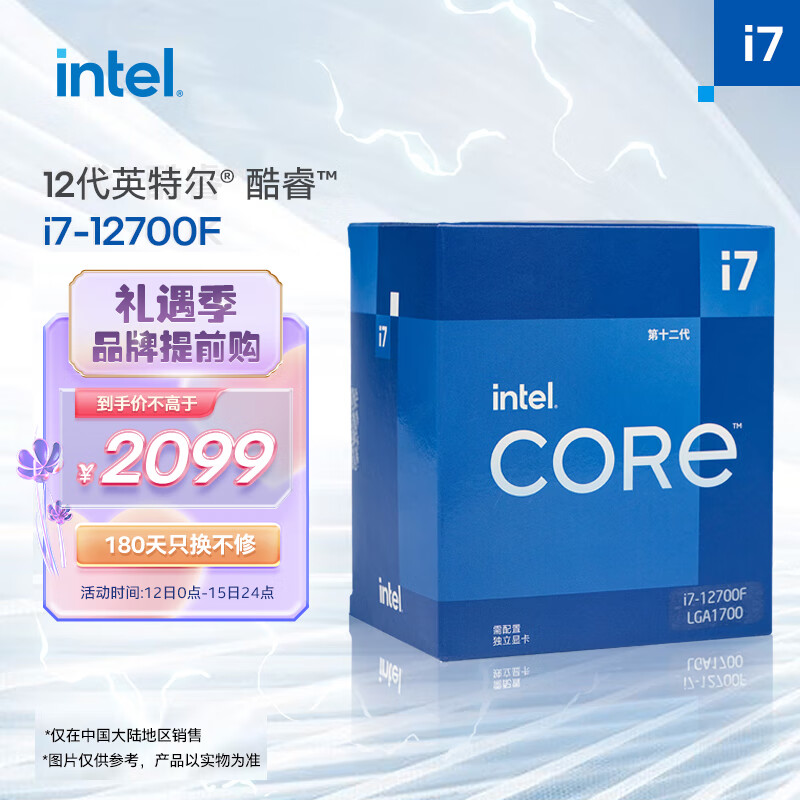 英特尔(Intel) i7-12700F 酷睿12代 处理器 12核20线程 睿频至高可达4.9Ghz 25M三级缓存 台式机CPU价格:2099.00元!