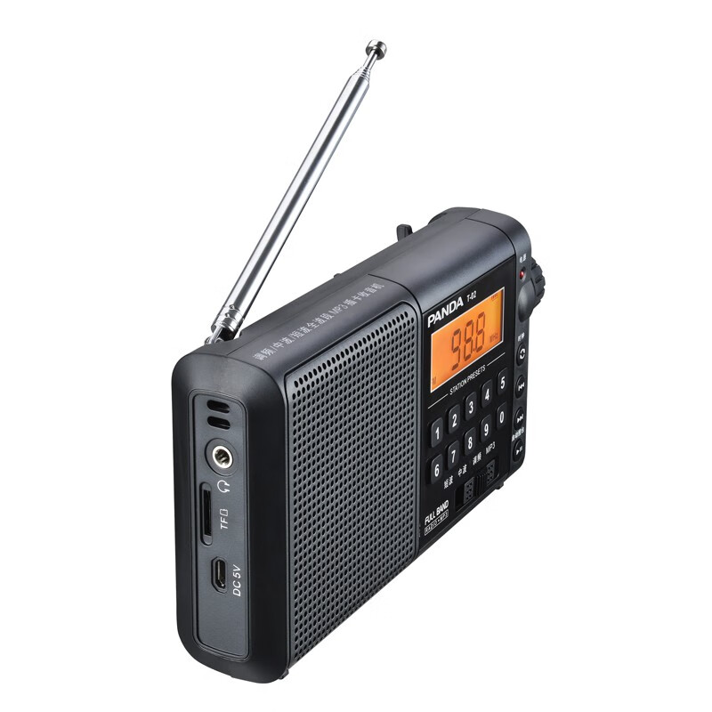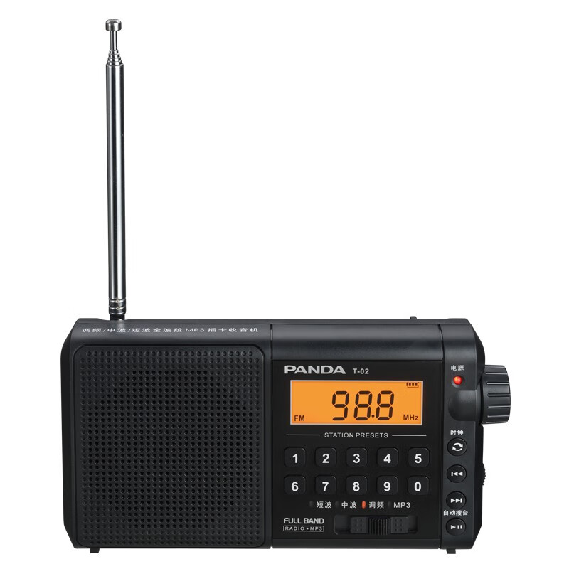 熊猫(PANDA)T-02全波段收音机老年人插卡TF卡便携老式可充电广播半导体 黑色价格:188.00元!