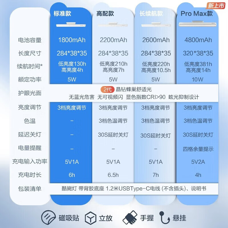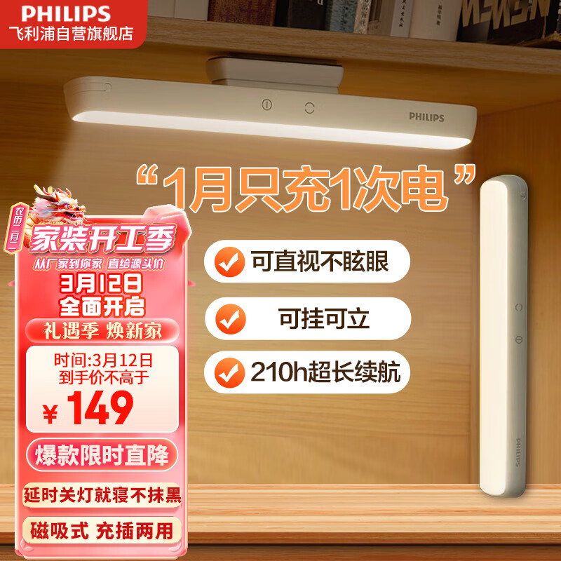 飞利浦(PHILIPS)护眼充电台灯酷毙灯挂灯磁吸式大学生宿舍床头学习台灯酷侠高配版价格:169.00元!