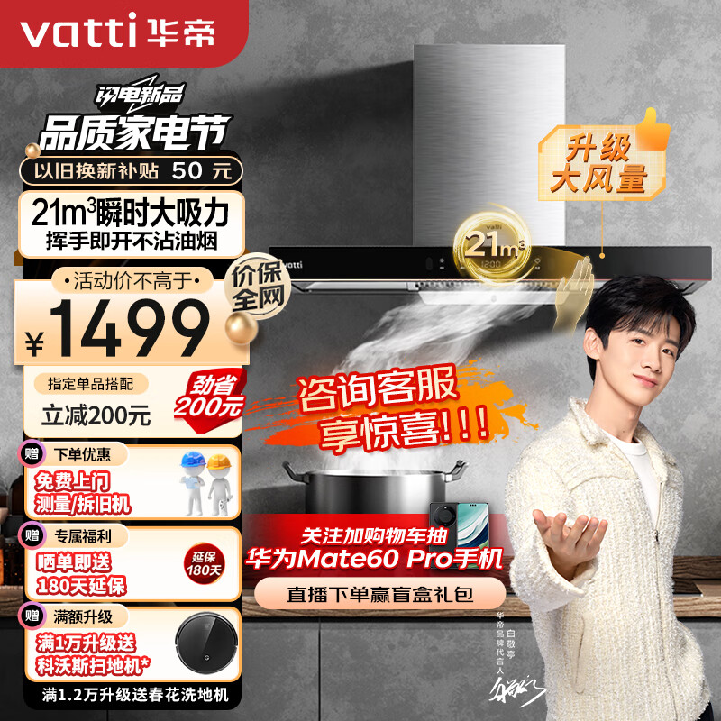 华帝(VATTI)抽油烟机 欧式顶吸家用吸油烟机排小尺寸油烟机 21立方米大吸力 挥手即开 i11176价格:1388.00元!