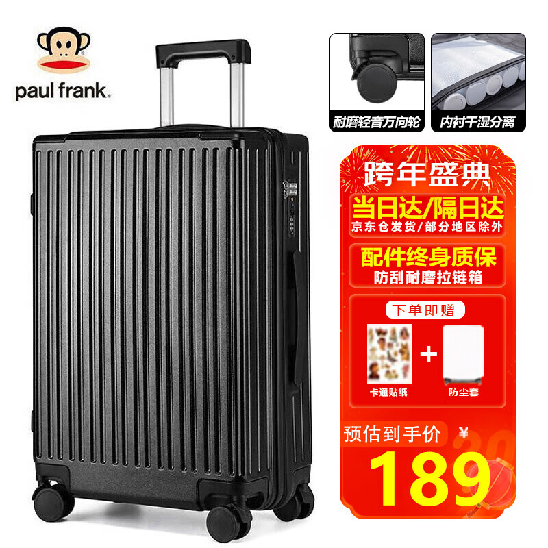 大嘴猴行李箱男旅行箱24吋拉杆箱女轻音万向轮商务皮箱防刮拉链密码箱价格:219.00元!