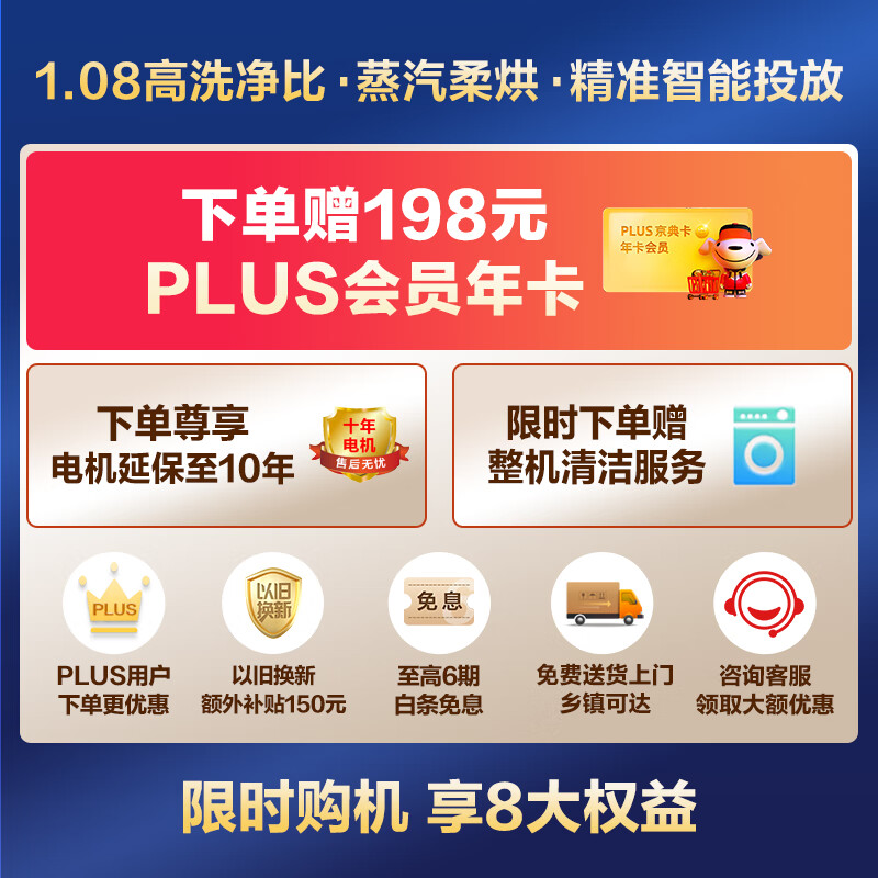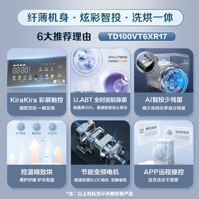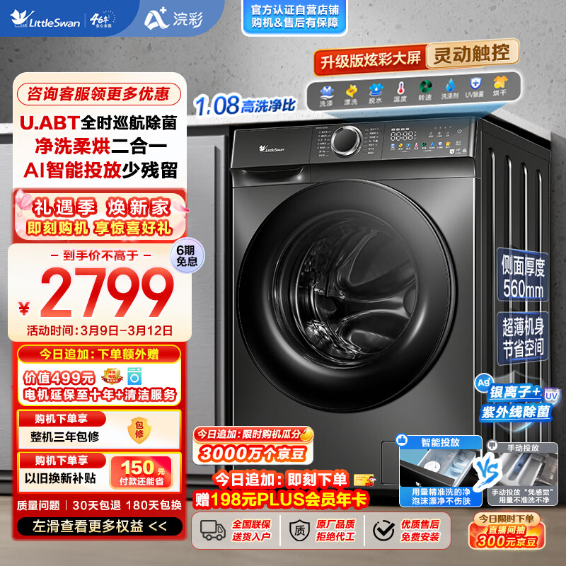 小天鹅(LittleSwan)滚筒洗衣机全自动 浣彩系列 10KG洗烘一体 巡航除菌 彩屏智能投放 1.08洗净比 TD100VT6XR17价格:2799.00元!