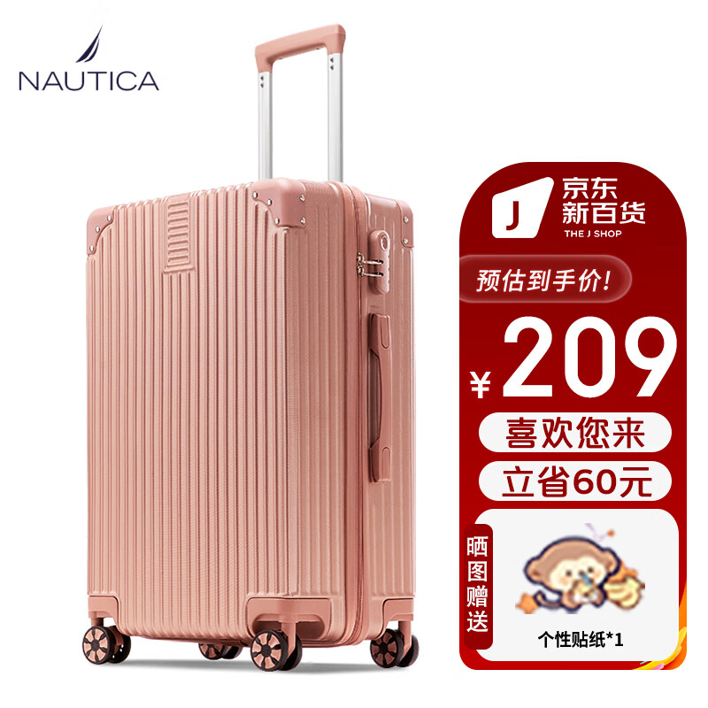NAUTICA行李箱万向轮拉杆箱28英寸大容量商务女士旅行箱密码皮箱子玫瑰金价格:269.00元!