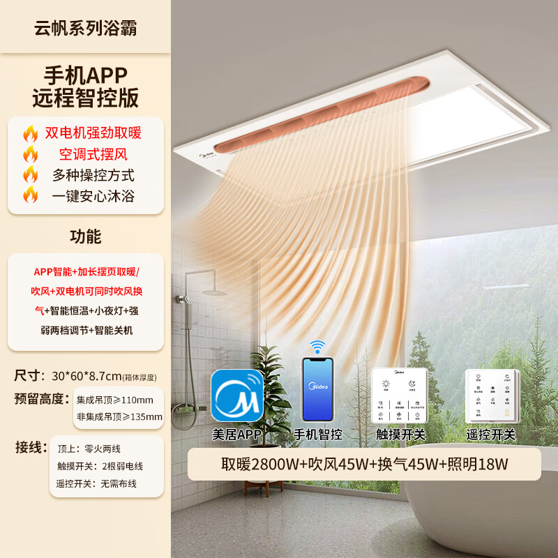 功能:摆叶,风暖,照明,换气,数字显示,吹风