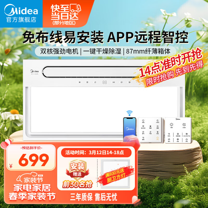 美的(Midea)浴霸灯暖风照明排气一体摆风速暖浴室取暖器卫生间灯集成吊顶Y5W价格:749.00元!