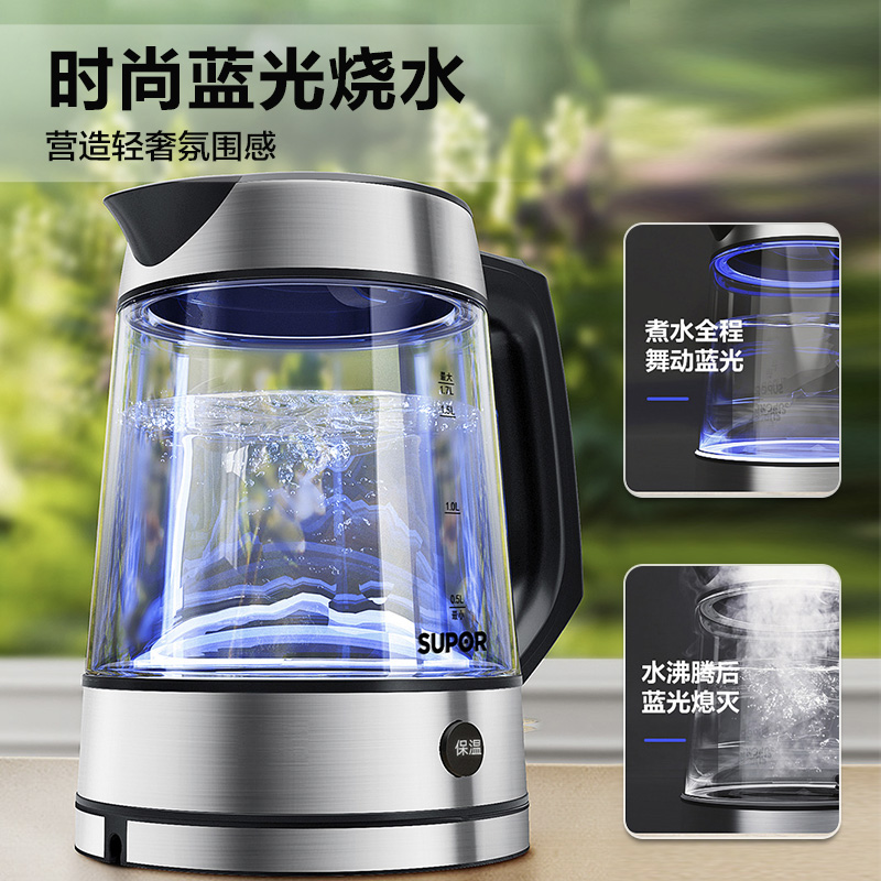苏泊尔(SUPOR)玻璃电水壶热水壶高硼硅玻璃电热水壶 1.7L烧水壶 一键保温恒温 SW-17E29A价格:128.00元!