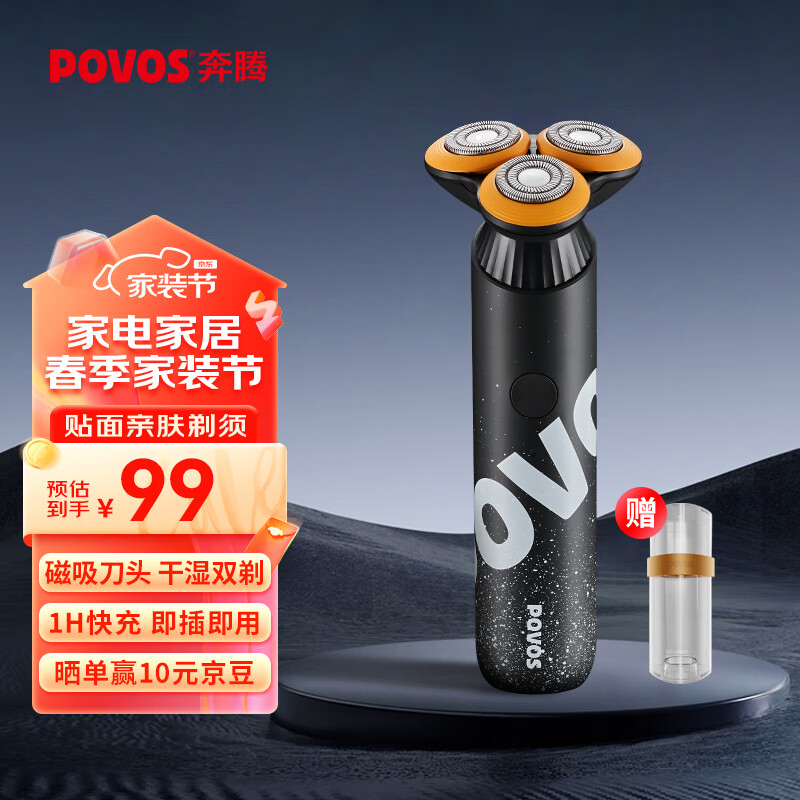 奔腾(POVOS)剃须刀电动刮胡刀胡须刀全身水洗快充PQ9700星空灰送男友送老公送男生生日纪念日礼物价格:103.00元!