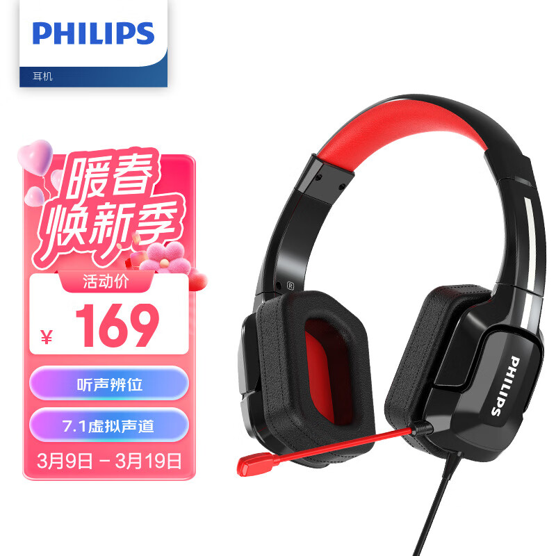 飞利浦(PHILIPS)GH401 游戏耳机 7.1虚拟环绕呼吸灯头戴式电脑竞技吃鸡线控带麦耳机 凉感耳罩 高敏麦克风价格:169.00元!