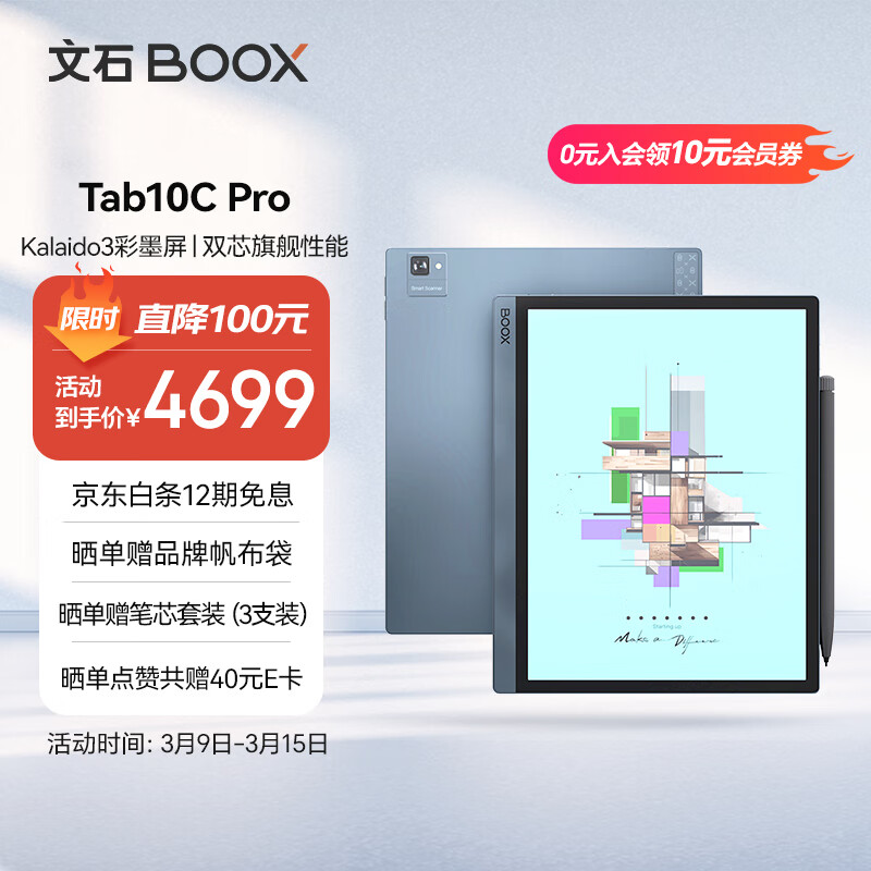 BOOX文石 Tab10C Pro10.3英寸彩色墨水屏电子书阅读器 智能办公本 大屏电纸书电子纸高刷 语音转文字价格:4699.00元!