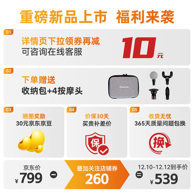 松下(Panasonic)筋膜枪肌肉按摩器 小金钻肩颈椎腿迷你按摩仪专业健身运动全身按摩枪高端礼物年会礼品RAD22白色价格:639.00元!