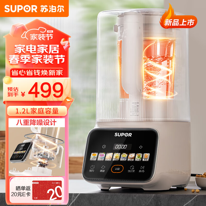苏泊尔(SUPOR)低音降噪破壁机 家用1.2L大容量可预约加热保温豆浆机榨汁机辅食机 SP626R价格:499.00元!