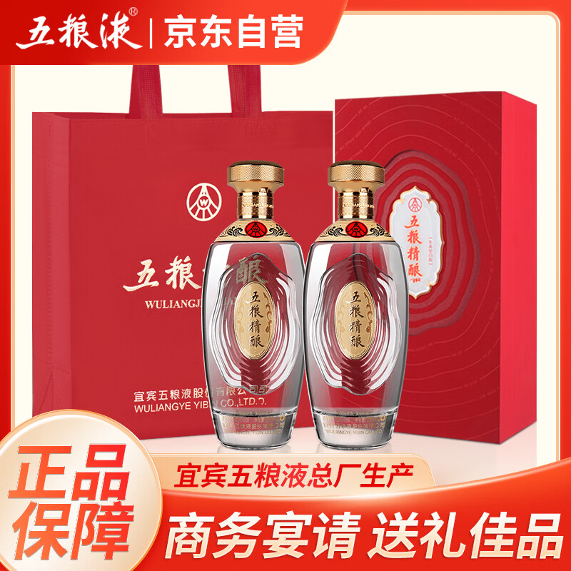 五粮液 年货送礼 五粮精酿珍酿 浓香型固态法龙年白酒 52度500ml*2瓶价格:916.00元!