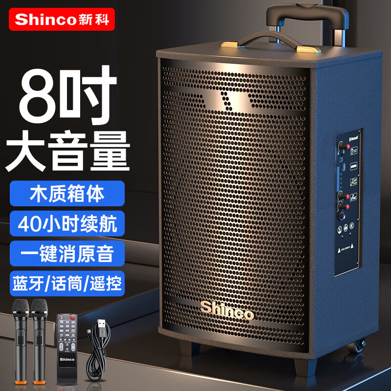 新科T30 广场舞音响户外拉杆音箱大功率家用K歌无线蓝牙大音量喇叭扩音器摆摊便携式低音炮 8吋双咪价格:348.00元!