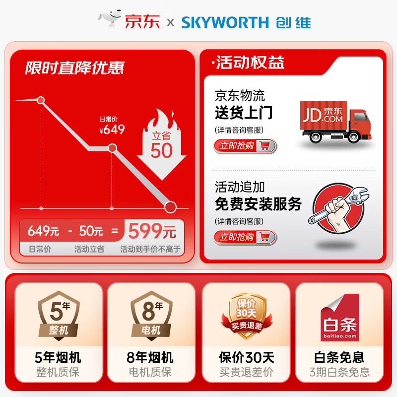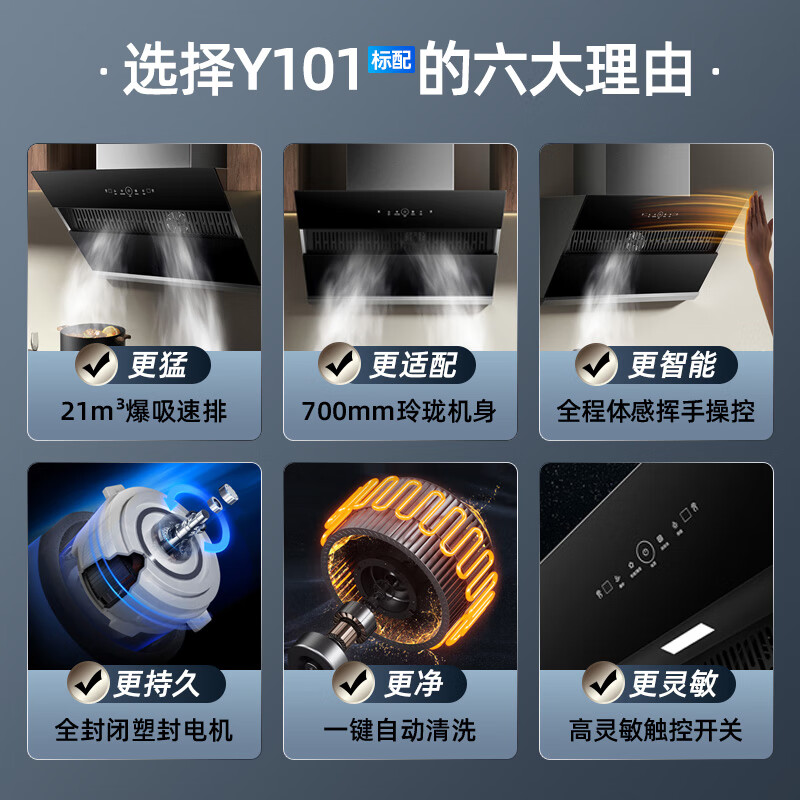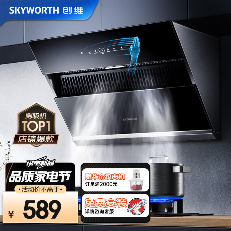创维(Skyworth)抽油烟机侧吸式家用厨房油烟机大吸力脱排吸油烟机 700小尺寸公寓换新自动清洗挥手智控Y101价格:589.00元!