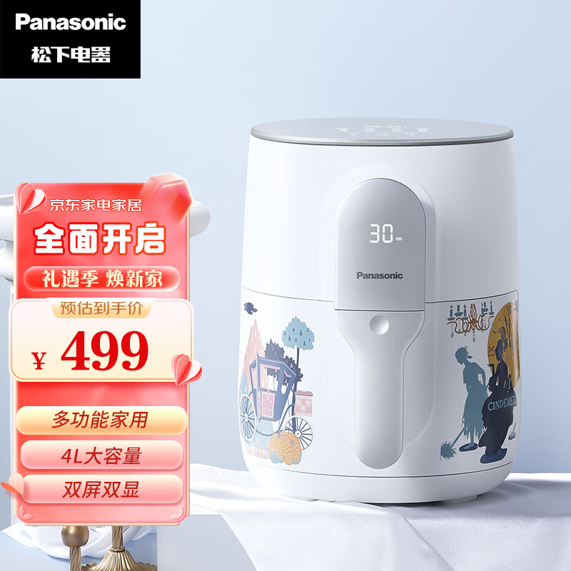 松下(Panasonic)多功能家用4L大容量双屏双显空气炸锅NF-HC180-W价格:499.00元!