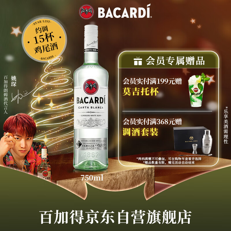 百加得(Bacardi) 洋酒 白朗姆酒 莫吉托 基酒调酒 750ml价格:74.00元!