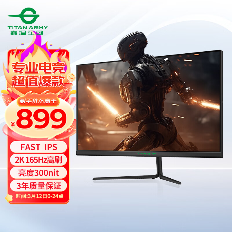 泰坦军团24.5英寸2K 原生165Hz FAST IPS快速液晶1ms响应 专业电竞游戏小钢炮 硬件低蓝光电脑显示器P25A2R价格:1099.00元!
