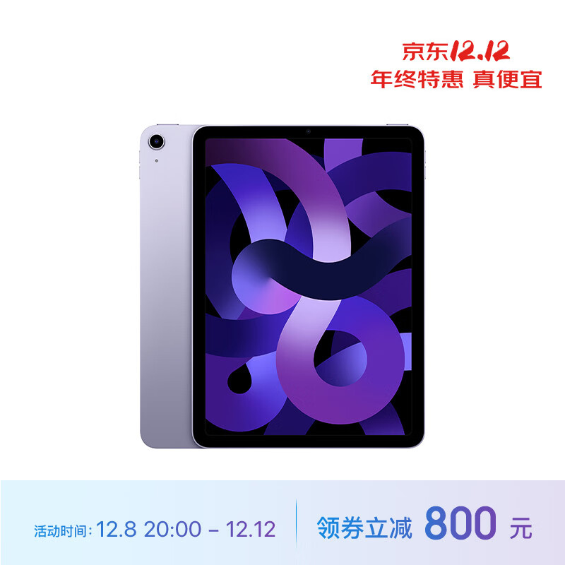 Apple【教育优惠】 iPad Air 10.9英寸平板电脑 2022款(64G WLAN版/M1/学习办公娱乐游戏/MME23CH/A)紫色价格:4399.00元!