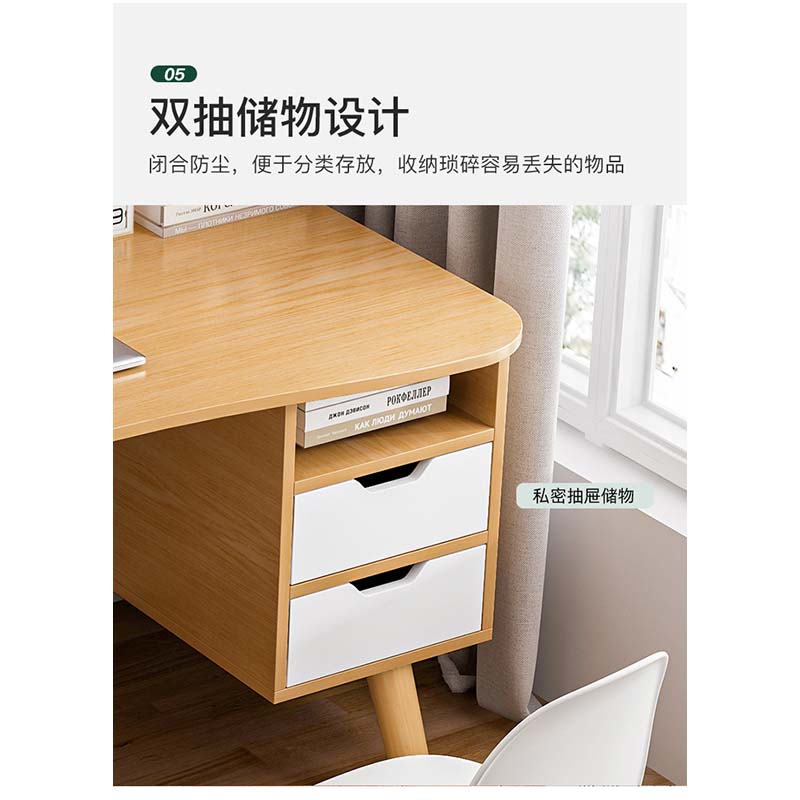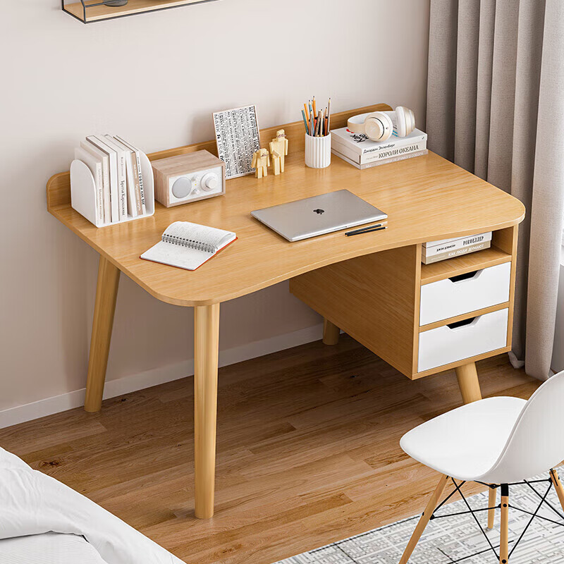 PULATA 电脑桌台式家用木腿书桌带抽屉收纳桌笔记本学习桌子 100*50 DN001723G01价格:168.00元!