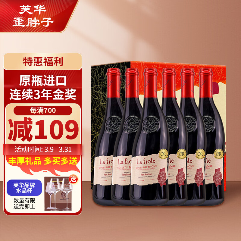芙华(La Fiole)歪脖子 法国原瓶进口 隆河干红葡萄酒 750ml*6支 整箱礼盒装价格:799.00元!