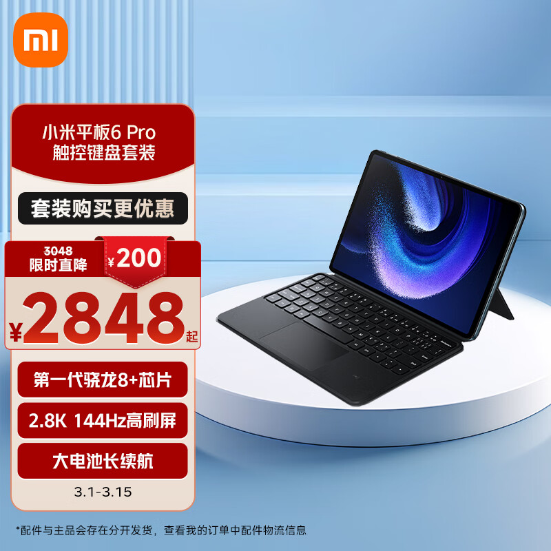 小米平板6Pro 11英寸 骁龙8+强芯 144Hz2.8K 8+128GB 移动办公娱乐平板电脑金色【触控键盘套装】价格:2848.00元!