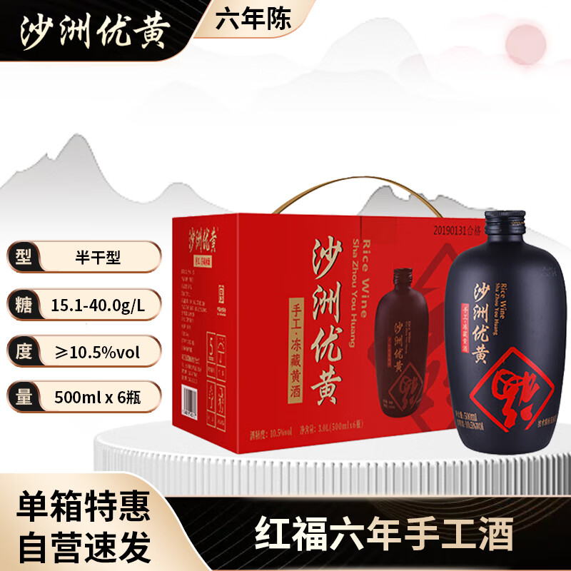 沙洲优黄 红福六年 半干型 苏派黄酒 500ml*6瓶 整箱装 清爽型价格:198.00元!