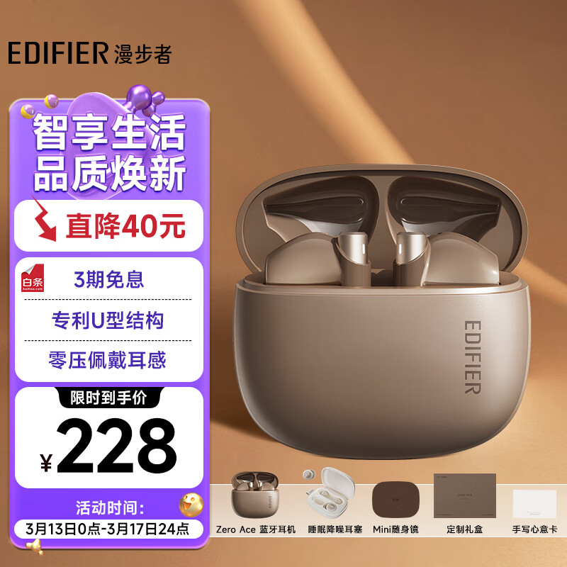 漫步者(EDIFIER)Zero Ace真无线蓝牙耳机+降噪睡眠耳塞礼盒套装 半入耳电竞游戏耳机 礼物礼盒 丹霞价格:238.00元!