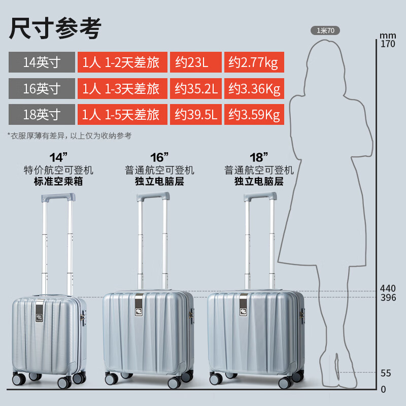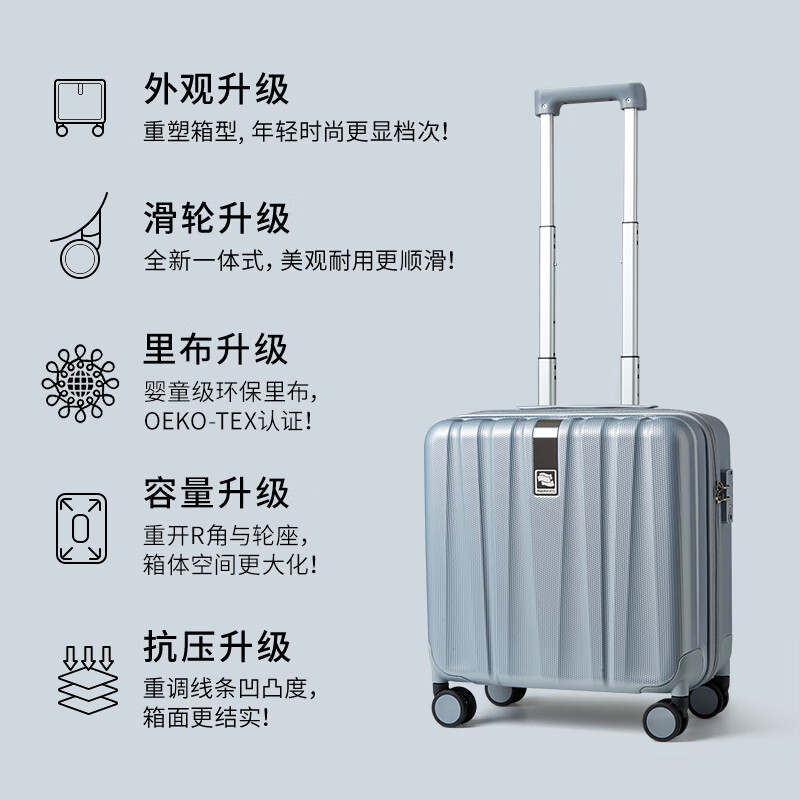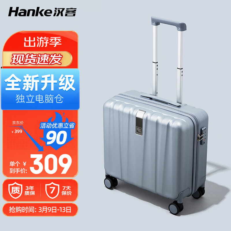 汉客行李箱男拉杆箱女登机旅行箱18英寸环保灰密码箱镇店之宝再次升级价格:399.00元!