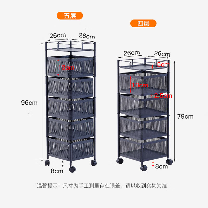喻品置物架落地厨房旋转蔬菜收纳架客厅储物架移动小推车ZW50方五层白价格:169.00元!