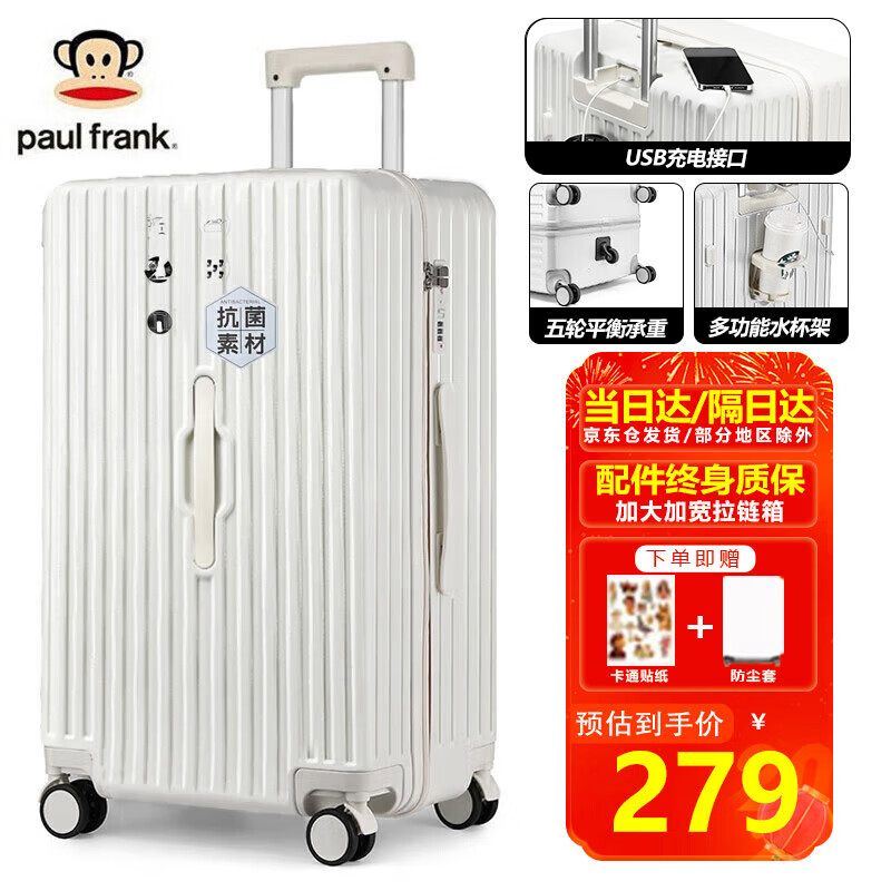 大嘴猴行李箱女大容量拉杆箱男24吋轻音万向轮加厚旅行箱抑菌拉链密码箱价格:309.00元!