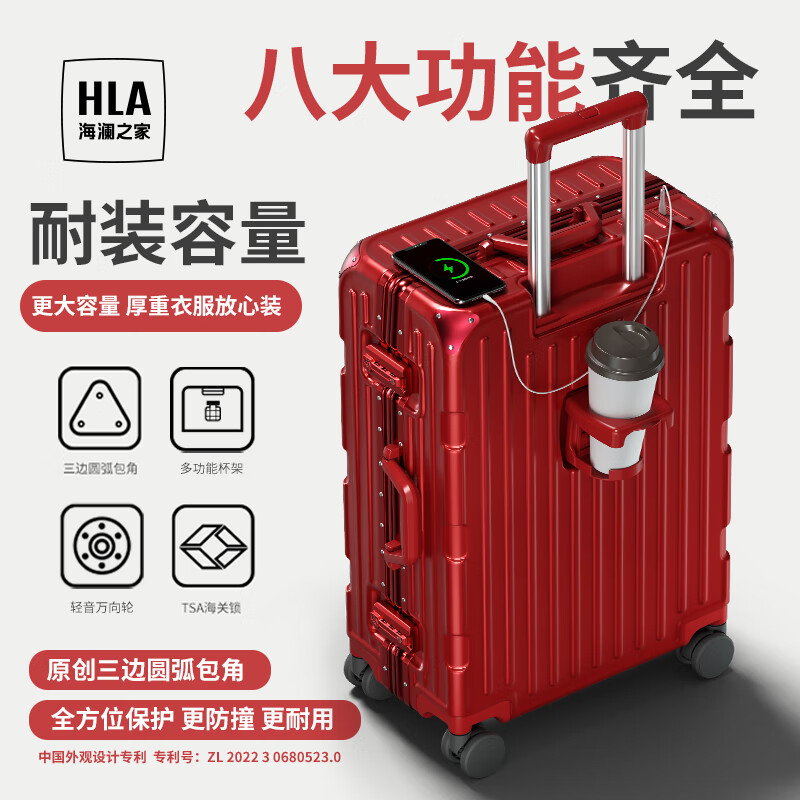 海澜之家(HLA)行李箱男女学生铝框拉杆箱旅行密码托运皮箱 法拉红24英寸价格:419.00元!