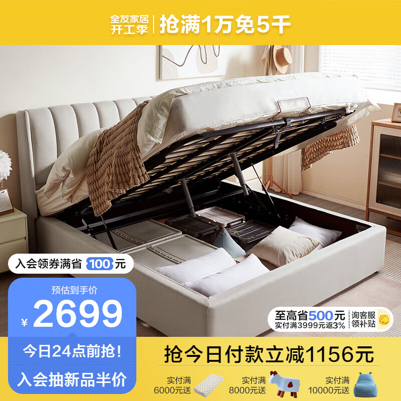 全友家居 床现代简约科技布床双人床卧室储物高箱床1.8米家具105207C价格:3855.71元!