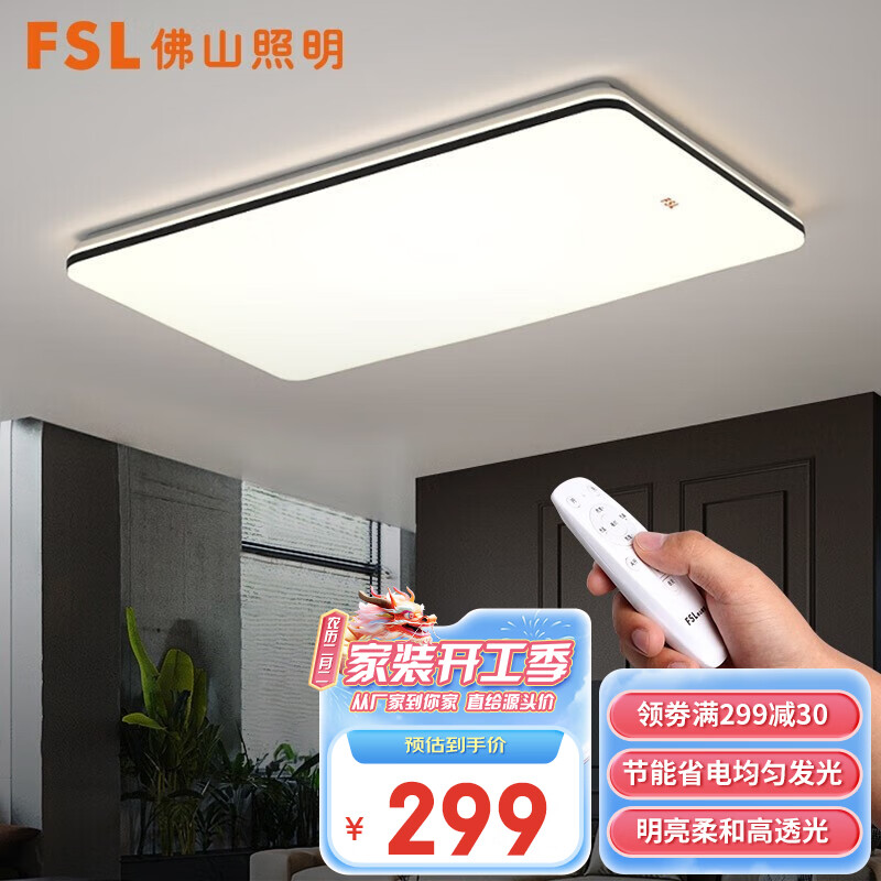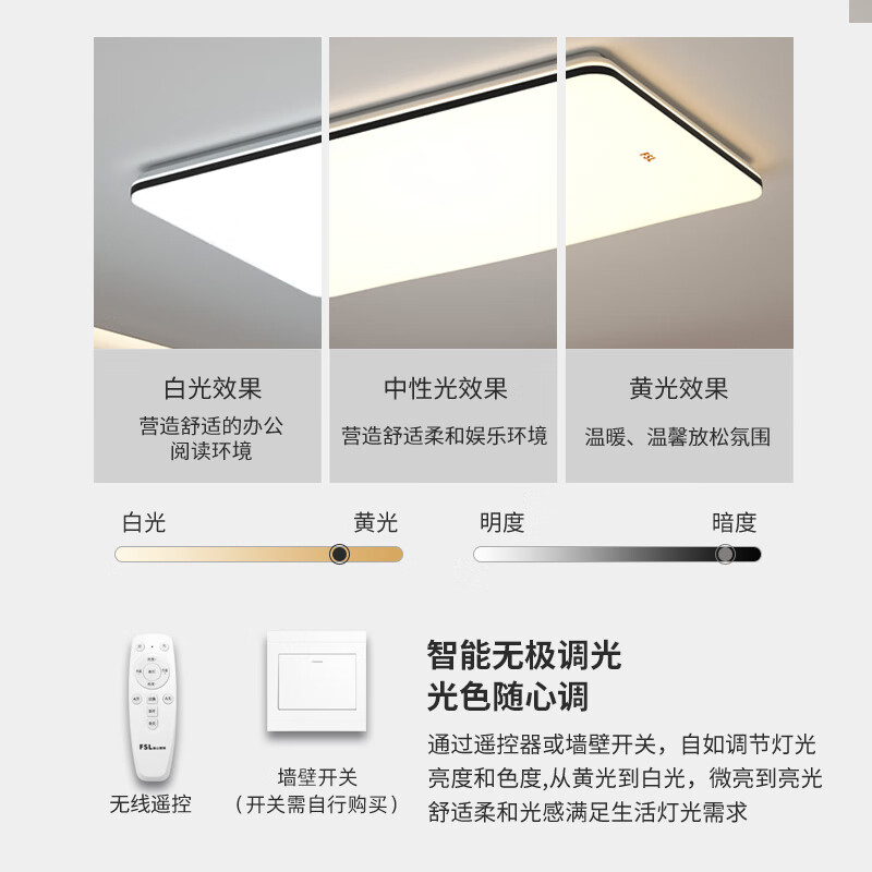 FSL佛山照明客厅灯LED吸顶灯遥控灯具简约灯饰无极调光112瓦54058价格:329.00元!