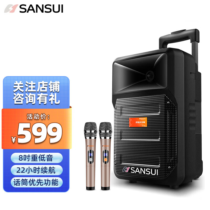 山水(SANSUI)MK15-08 广场舞音响音箱户外移动便携式拉杆蓝牙播放器 旗舰版价格:599.00元!