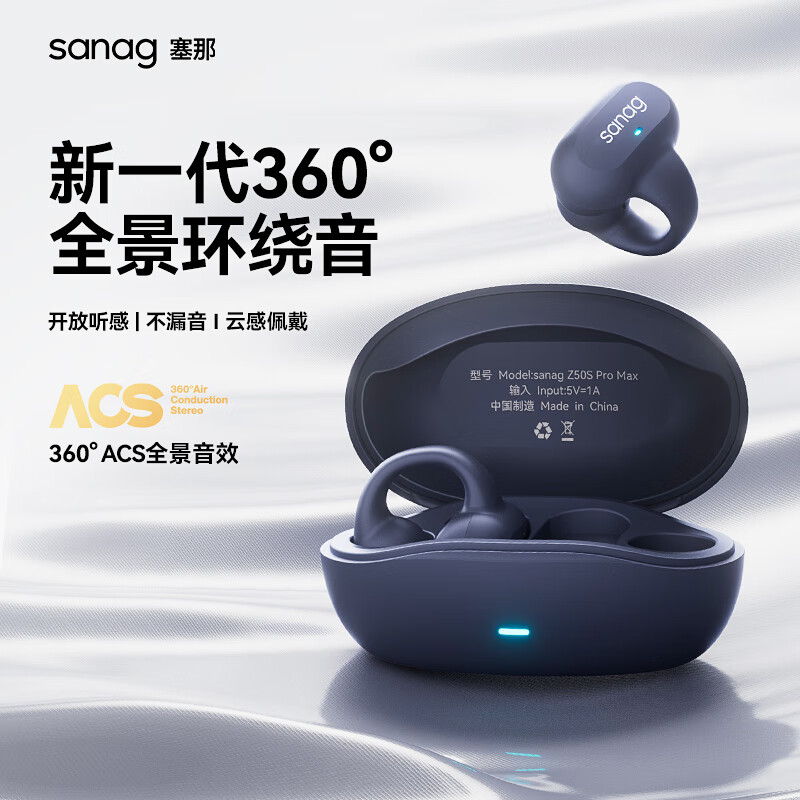SANAG塞那【榜首推荐】骨传导概念蓝牙耳机开放式无线夹耳式不入耳挂耳式耳夹式运动通话降噪适用华为 地藏蓝丨CVC通话降噪丨限量配色价格:289.00元!