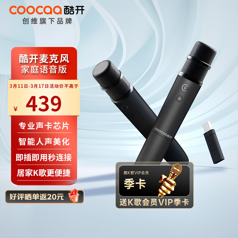 酷开 创维出品 酷K-QD创维电视专用麦克风家庭KTV 卡拉OK 降噪话筒唱歌会议 无线话筒K歌双支麦克风价格:699.00元!