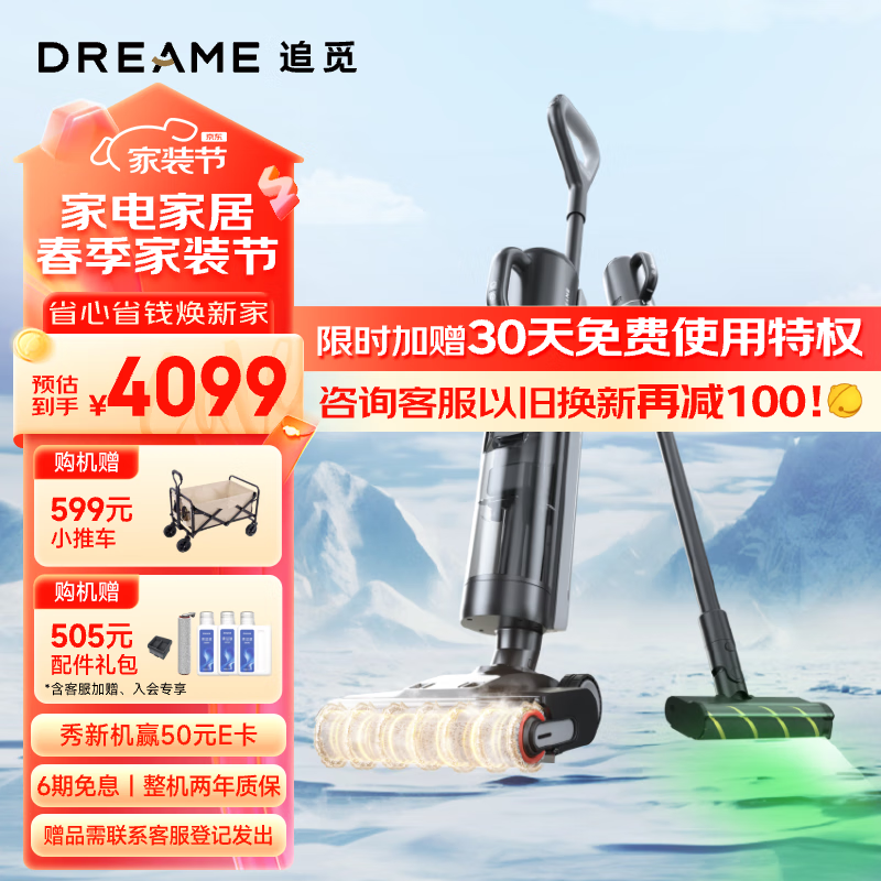 追觅H30 MIX无线智能洗地机热水自清洁热风快烘双助力双贴边全屋清洁吸尘吸拖扫多合一价格:4399.00元!
