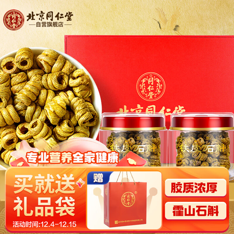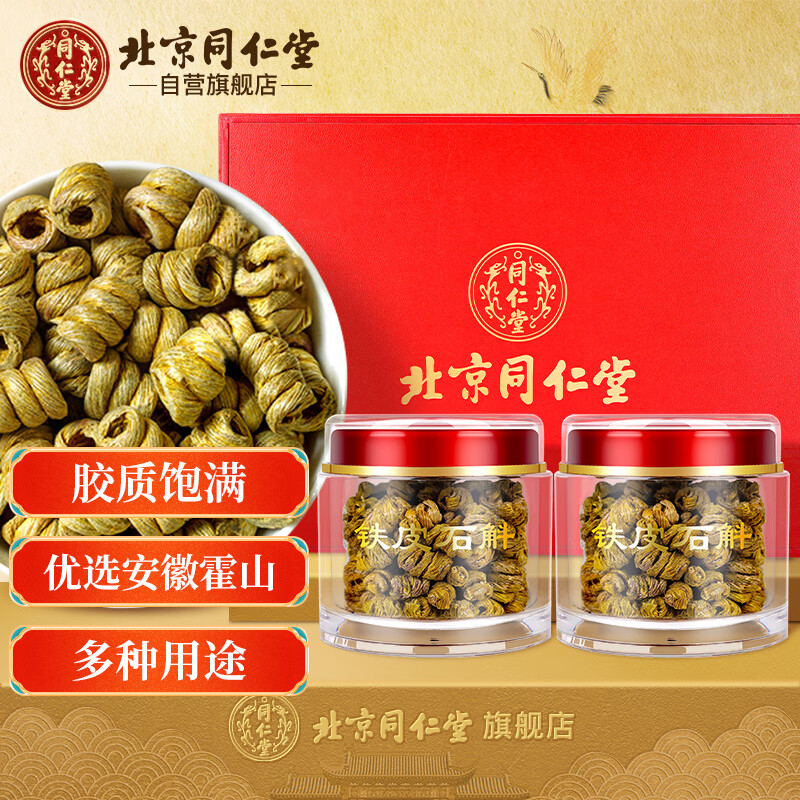 同仁堂(TRT)铁皮石斛正宗安徽霍山米斛霍斛枫斗干石斛茶耳环石斜泡酒泡茶煲汤榨汁送礼礼盒70g*2瓶/盒价格:1098.00元!