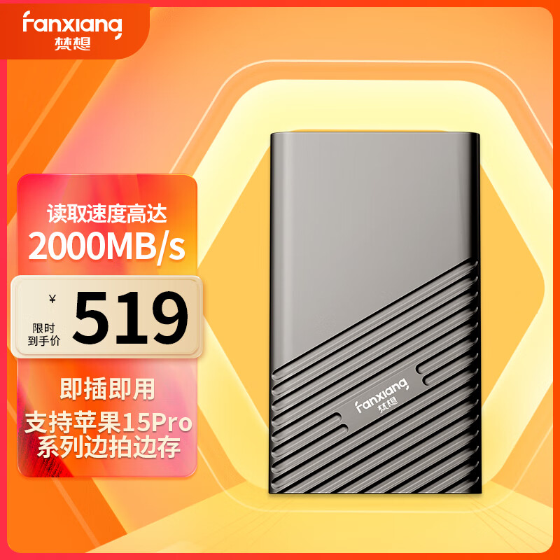 梵想(FANXIANG)1TB 移动固态硬盘(PSSD)Type-c硬盘长江存储晶圆USB3.2高速传输2000MB/s PS2000枪黑色价格:519.00元!