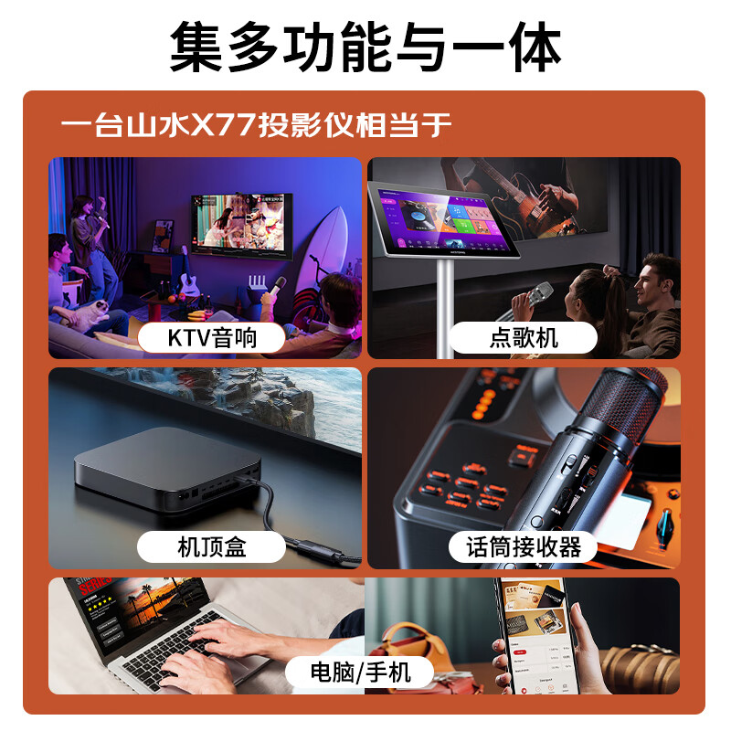 山水 X77户外音乐K歌投影仪家用 家庭KTV投影机 听歌+k歌+看电影露营(1080p高清 雷石点歌 百万曲库)价格:2999.00元!